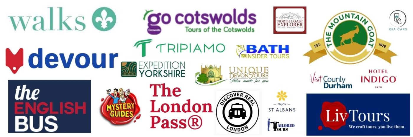Walks & Devour Tours, Discover Real London, XFA Cars, Go Cotswolds, Tripiamo, Mountain Goat, Fantastic Walks, LivTours, Expedition Yorkshire, North Coast Explorer Tours, The English Bus, Scalens Studio, Hotel Indigo Bath, Billesley Manor Hotel & Spa.
